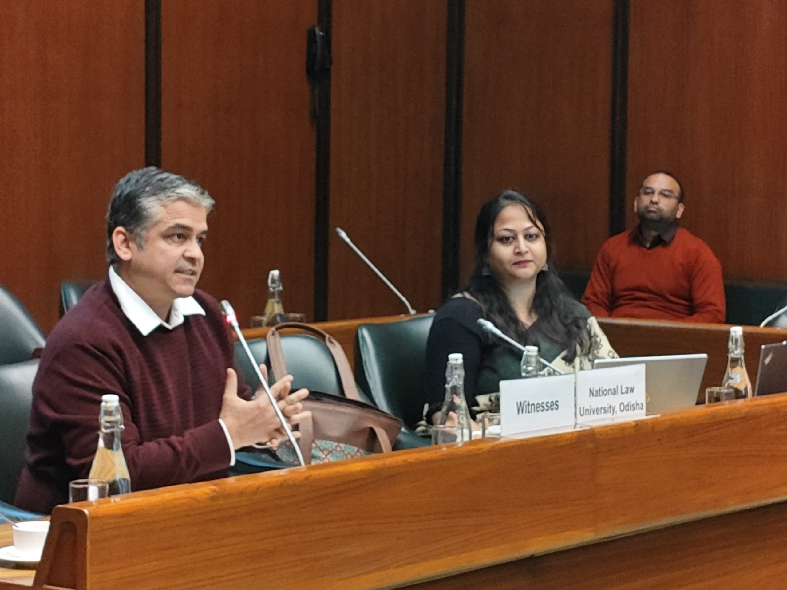 Prof. (Dr.) Rangin Pallav Tripathy, Registrar, National Law University Odisha, along with Dr. Rishika Khare, Assistant Professor of Law, National Law University Odisha, made a presentation before the Joint Parliamentary Committee on 22 January 2026 on three significant legislative proposals.