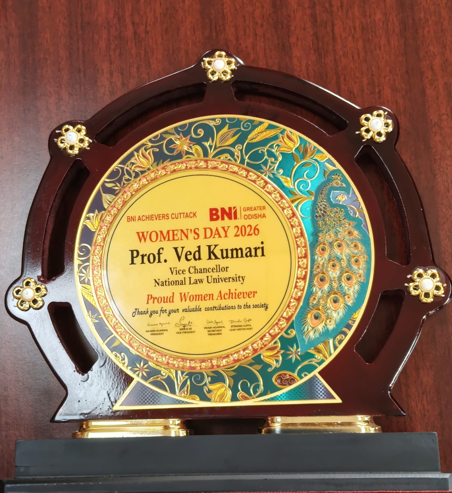 National Law University Odisha (NLUO) is exceptionally proud to announce that our esteemed Vice Chancellor, Prof. (Dr.) Ved Kumari, has been felicitated by BNI Achievers, Cuttack (part of BNI Greater Odisha) in recognition of International Women’s Day.
